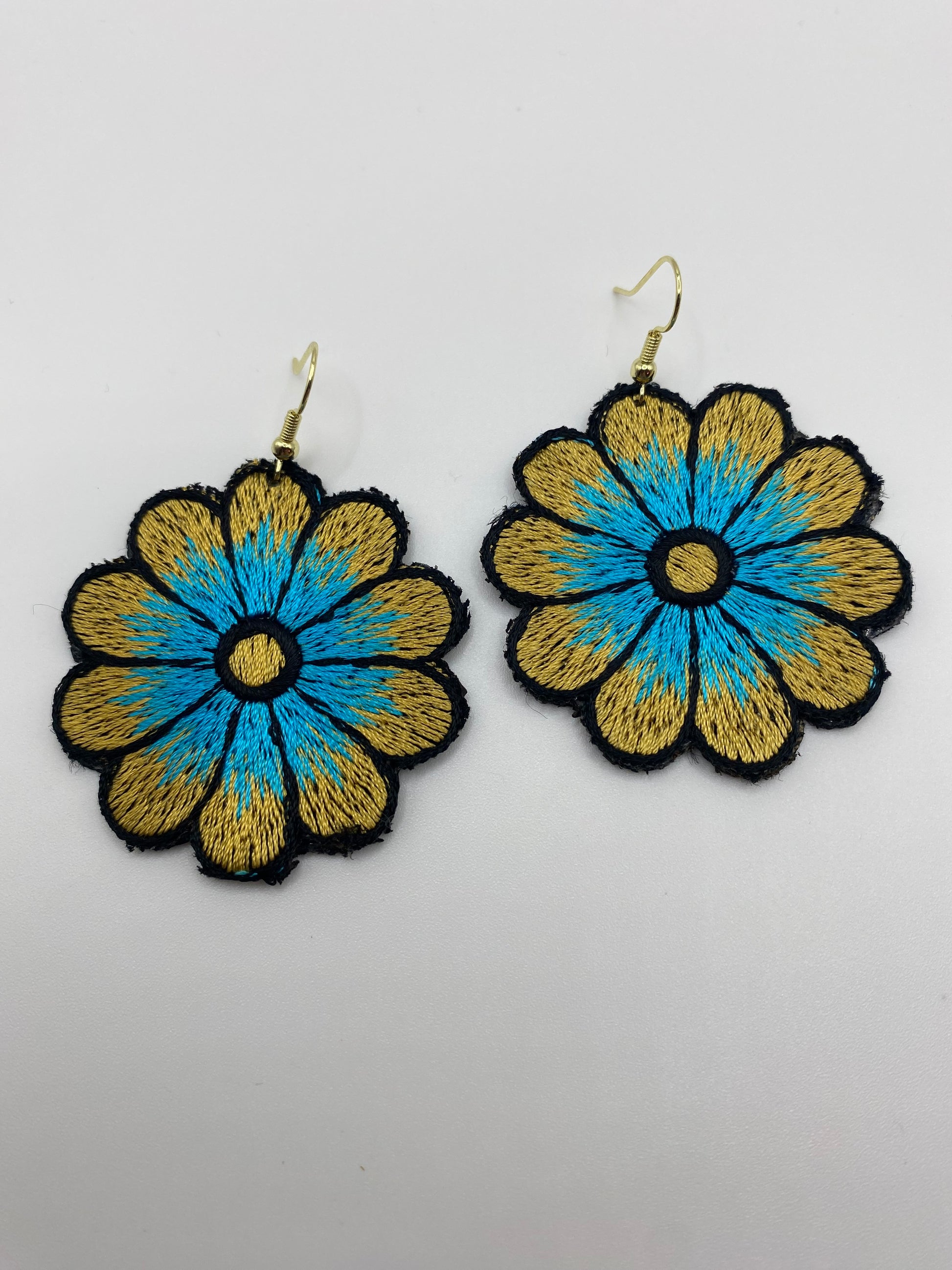 These Blue & Gold Embroidered Flower Earrings showcase exquisite hand-crafted artistry from Retalhuleu, Guatemala. Featuring vibrant flowers, each earring is meticulously embroidered by skilled artisans. They are 2.5 inches long and lightweight, making everyday wear very comfortable. The detailed embroidery highlights traditional techniques, offering a unique accessory that combines cultural heritage with elegant design. Perfect for those who appreciate authentic, handcrafted jewelry with a refined touch.