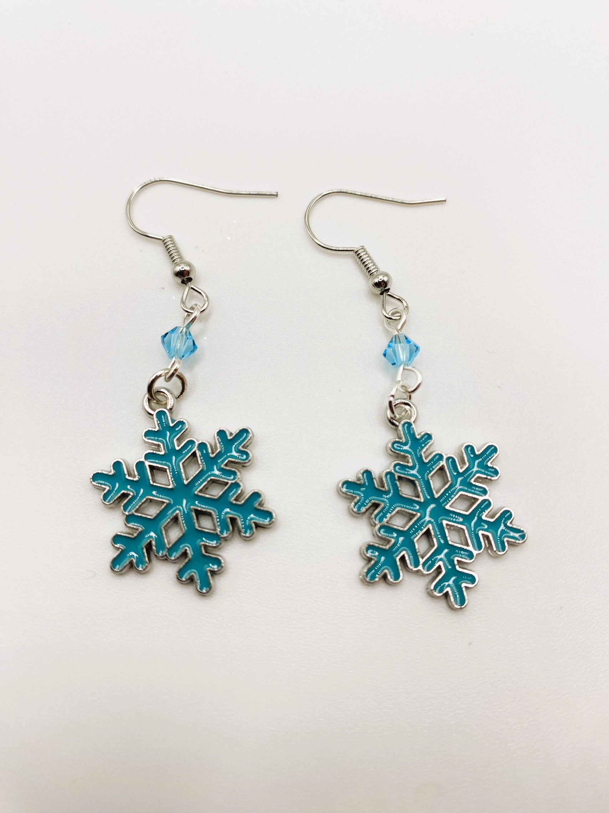 Capture the serene essence of winter with these elegant Blue Snowflake Earrings. Each pair features a delicate blue crystal bead paired with a snowflake charm. At 2.5 inches in length, they offer a graceful drop that frames the face beautifully. The cool blue tones evoke the crisp tranquility of the season, making them an ideal choice for winter styling.