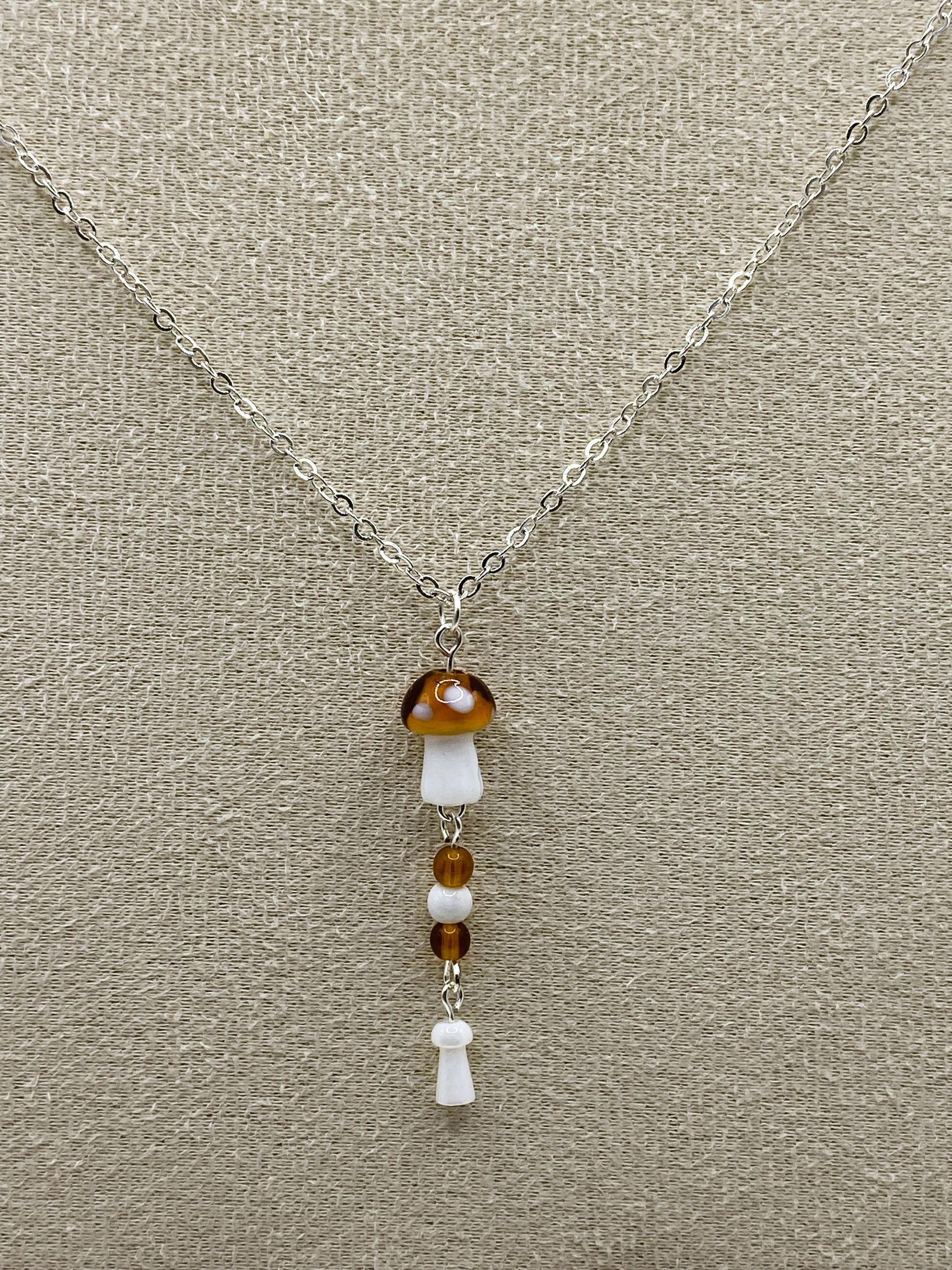 The Brown Mushroom Jewelry Set – Style 1 embodies a charming cottage core aesthetic with a 21-inch necklace and 2-inch earrings featuring whimsical brown mushroom motifs. Delicate details include miniature white mushrooms, adding subtle intricacy and a touch of nature-inspired fantasy. This set offers a refined yet playful accessory choice for those who appreciate handcrafted, storybook-inspired designs.