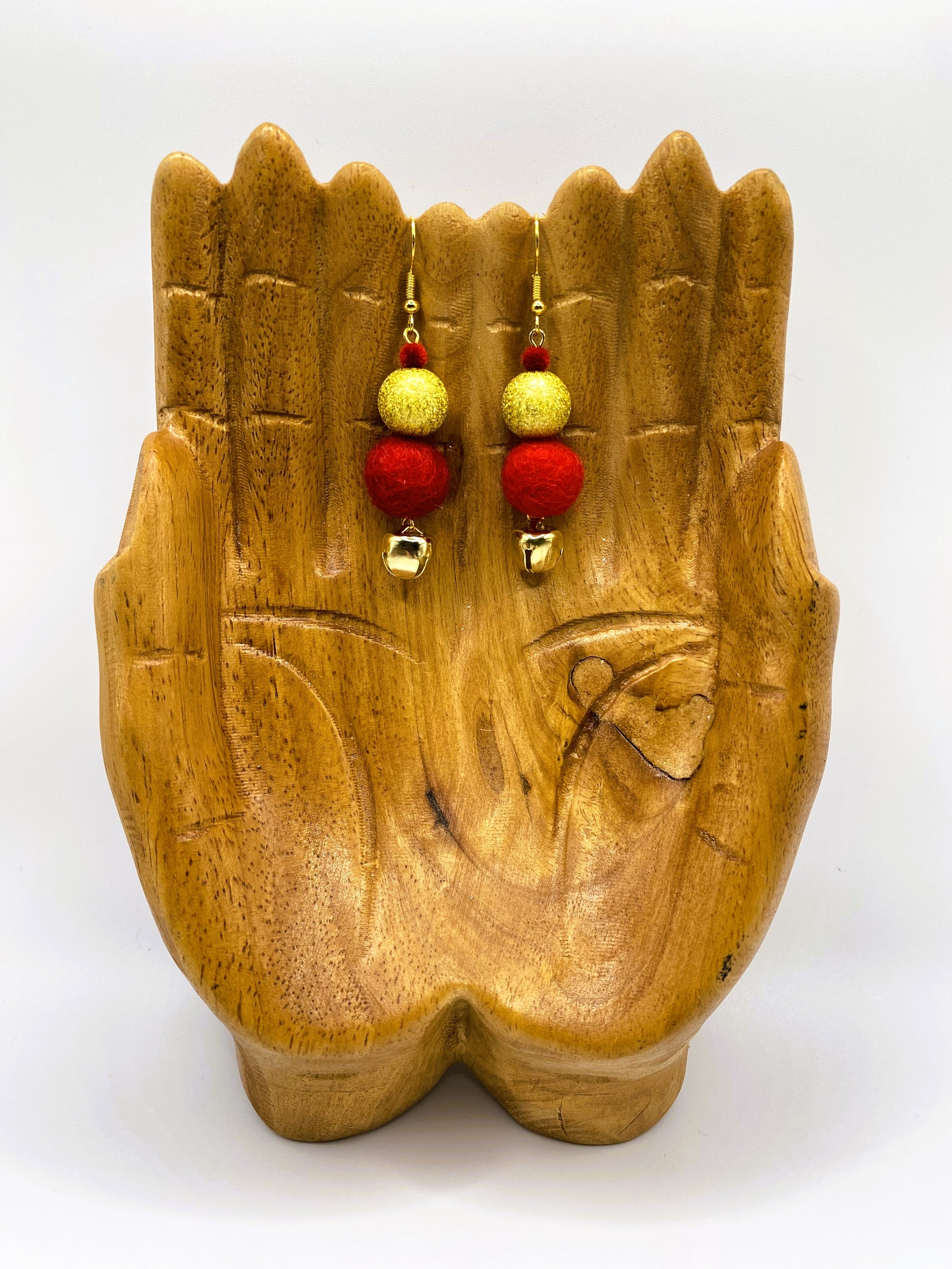 These charming Red & Gold Christmas Earrings blend timeless holiday elegance with playful festive appeal. Featuring soft red beads paired with a glittery gold accent bead and a delicate gold jingle bell that chimes gently at the bottom, each 2.5-inch earring delivers authentic seasonal character. The combination of warm red tones and shimmering gold creates a sophisticated yet spirited look perfect for holiday gatherings, office parties, or everyday festive wear. The subtle jingle bell adds an interactive element that captures the magic of Christmas.